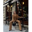 Süet Gömlek Palazzo Pantolon İkili Takım - Kahve Kahve