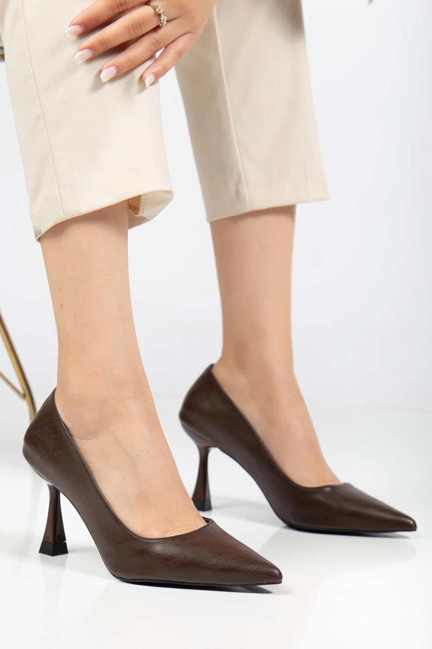 Suins Cateline Model Kadın Topuklu Metalik Özel Renk Stiletto Ayakkabı Kahve