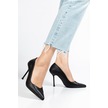 Suins Hakiki Deri Morgen Model Kadın İnce Topuklu Stiletto Ayakkabı Siyah