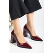 Suins Premium Kevin Model Kadın Kalın Topuklu Kroko Stiletto Ayakkabı Bordo