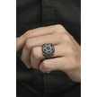 Süleyman Mührü Desenli Mikro Taşlı 925 Gümüş Erkek Yüzük