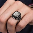 Süleyman Mührü Kare Desenli 925 Gümüş Erkek Yüzük
