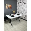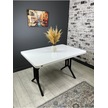 Sultan Beyaz Siyah Mutfak Yemek Masası Balkon Masası Kavisli Köşe Metal Siyah Ayak 120 80 Cm