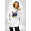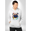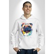 Sulu Boya Pug Köpek Kadın Erkek Beyaz Kapüşonlu Sweatshirt Hoodie Beyaz