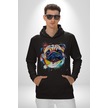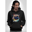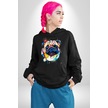 Sulu Boya Pug Köpek Kadın Erkek Siyah Kapüşonlu Sweatshirt Hoodie Siyah