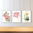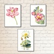 Suluboya Lotus Çiçeği 3'lü Japon Çiçek Çerçevesiz Poster 50 X 70