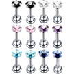 Suntek 12 Parça Paslanmaz Çelik Zirkon Helix Dudak Tragus Çok Renkli