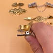 Mineli Turkuaz Ve Krem Balık Figürlü Gold Renk Kadın Broş
