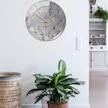 Suntek Mermer Dokulu Yuvarlak Pille Çalışan Ofis İçin İskandinav Tarzı Duvar Saati Gri