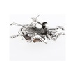 Mineli Turkuaz Ve Krem Balık Figürlü Gold Renk Kadın Broş