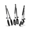 Suofeng 3'lü Siyah 30cm Paslanmaz Çelik Mutfak Kelepçesi - Silikon Uçlu, Makarna Ve Salata Bufetleri İçin Izgara Kelepçesi Siyah