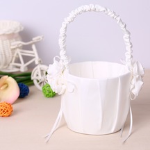 Suofeng Düğün İçin Beyaz Saten Çiçek Sepeti - Gelinik/gelin Çocuğu Taşınabilir Saçma Sepeti - 3 Saten Çiçekli Dekoratif Tasarım Ymhl-047
