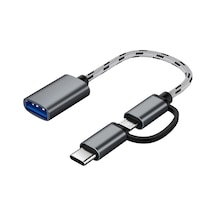 Suofeng Nylon Örgü Type-c/micro Usb Çift Uçlu Veri Kablosu - Usb 3.0 5gbps Hızlı Transfer - Android Telefonlar İçin - Gri Renk