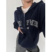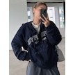 Süper Power Hırka - Lacivert Baskılı Oversize Kapüşonlu Lacivert