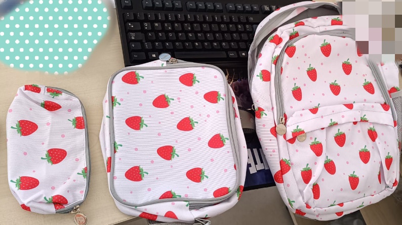 Superbag Kız Çocuk Ilkokul Çantası Çilek Desenli Sırt Çantası Beslenmelik Ve Kalemlik 3'lü Set