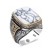 Supertrend Gümüş Beyaz Çizgili Havlit Taşlı Kare Erkek Yüzük Gümüş