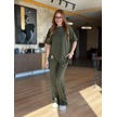 Supplierby Kadın Kısa Kollu Bisiklet Yaka Asimetrik Viskon Iki Iplik Bluz Ve Pantolon Ikili Takım Yeşil