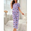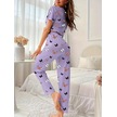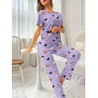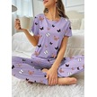 Supplierby Kadın Kısa Kollu Bisiklet Yaka Kelebek Baskılı Süprem Ikili Takım Mor