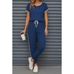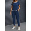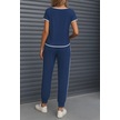 Supplierby Kadın Kısa Kollu Kayık Yaka Viskon Iki Iplik Bluz Ve Bağcıklı Pantolon Ikili Takım Lacivert