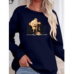 Supplierby Kadın Uzun Kollu Bisiklet Yaka Viskon Iki Iplik Bluz Lacivert