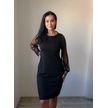 Supplierby Kadın Uzun Kollu Yakası Yanlardan Hafif Açık Kollar Tül Ve Taş Detay Kısa Krep Elbise Siyah
