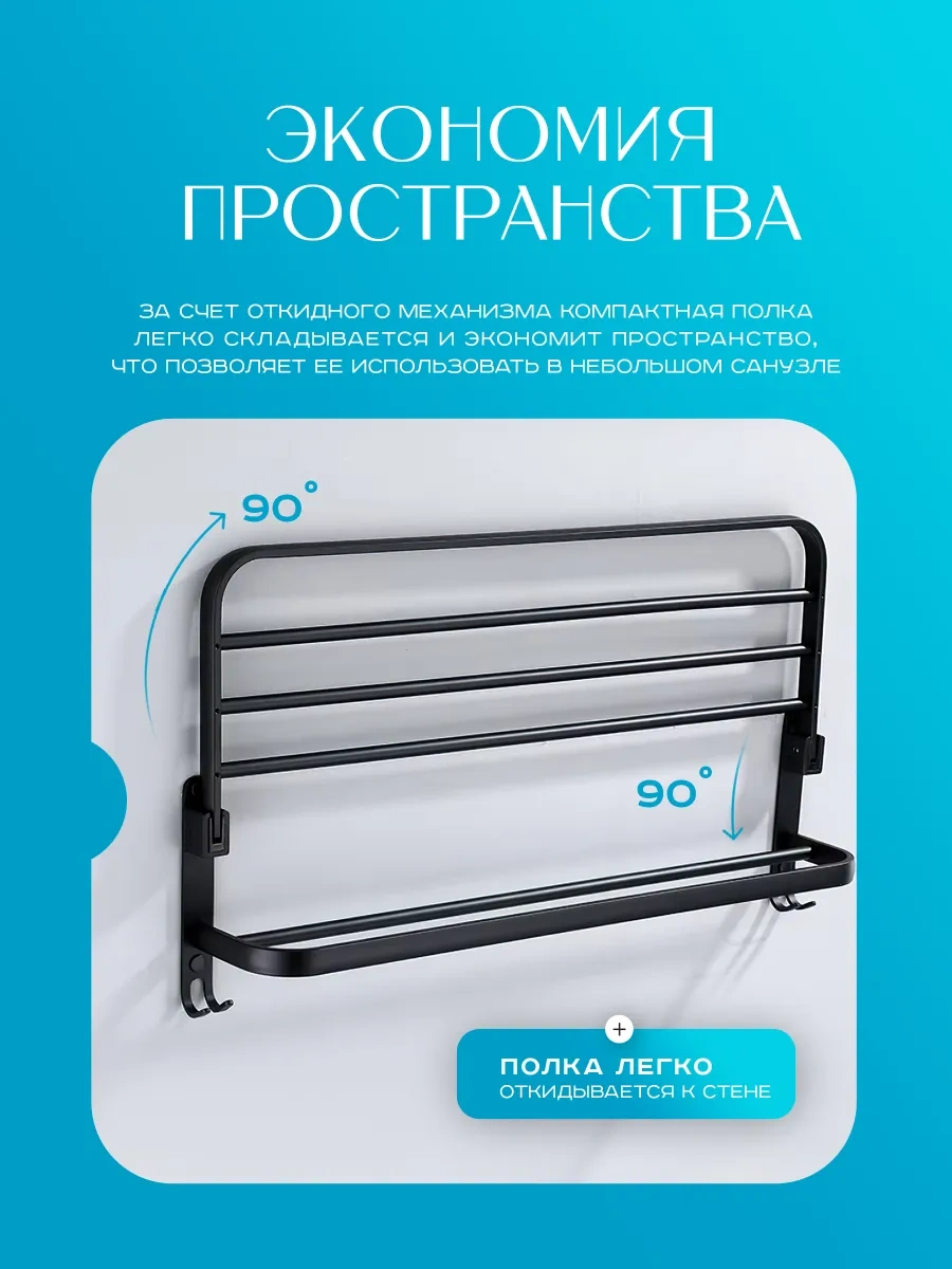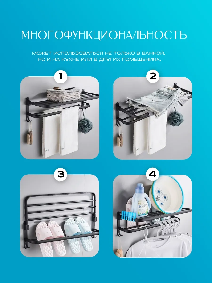 Supretto Katlanabilir Düz Banyo Rafı 60 Cm 311642535 Siyah