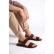 Sur Sandalet El Yapımı Kösele Erkek Deri Bodrum Sandalet Kahverengi