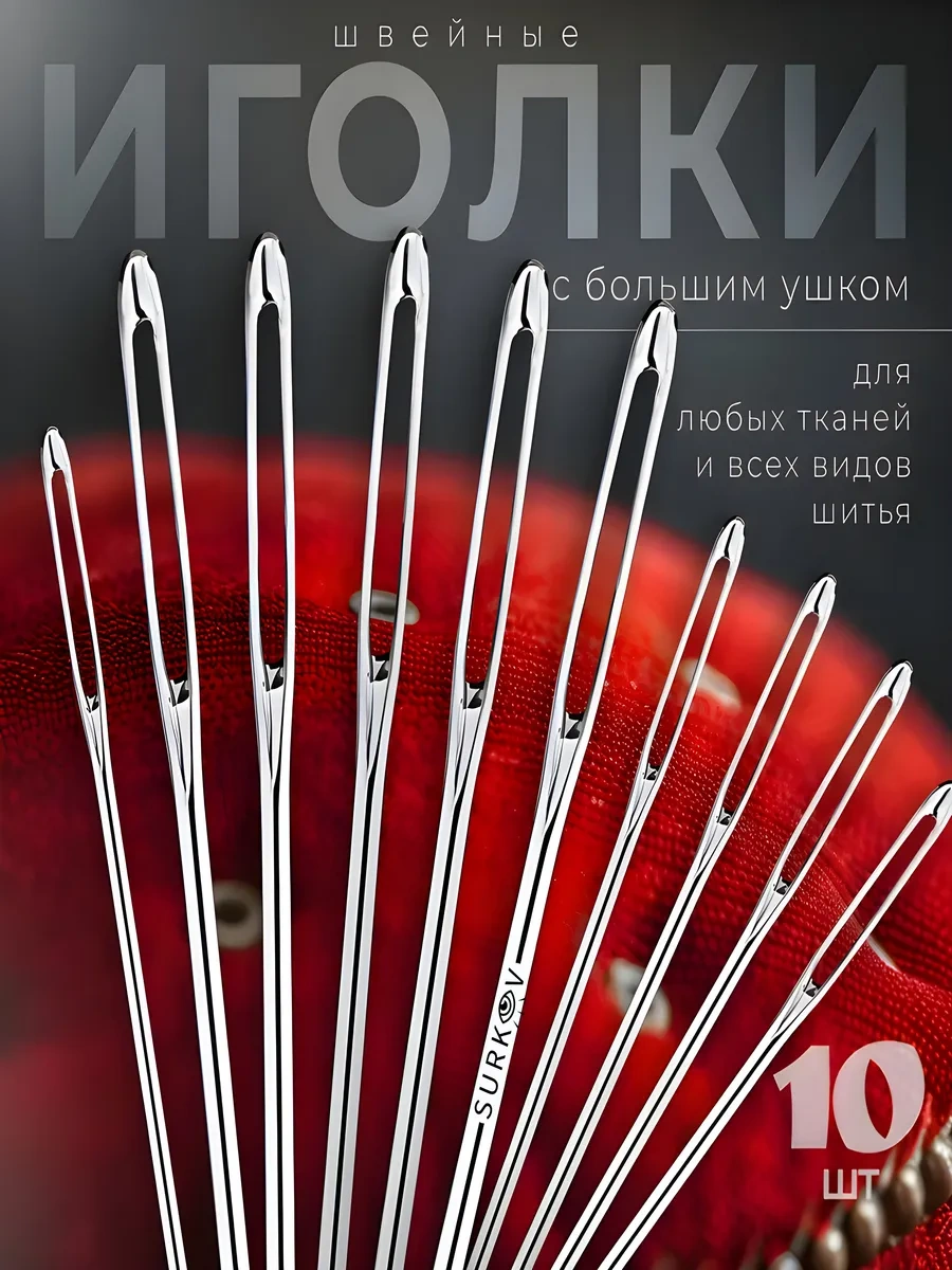 Surkov Büyük Delikli Dikiş İğneleri 10 Adet İğne 242385468