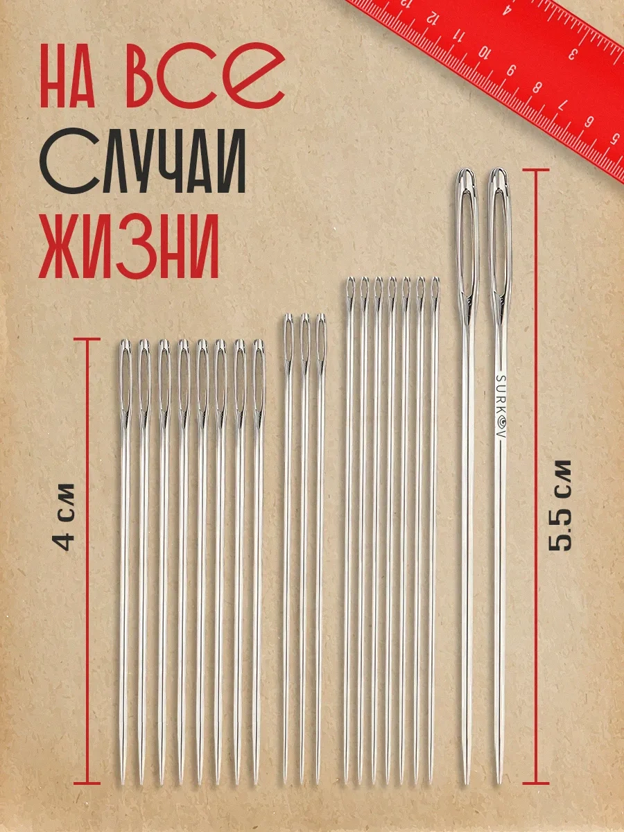 Surkov Büyük Delikli Dikiş İğneleri 20 Adet 188934039
