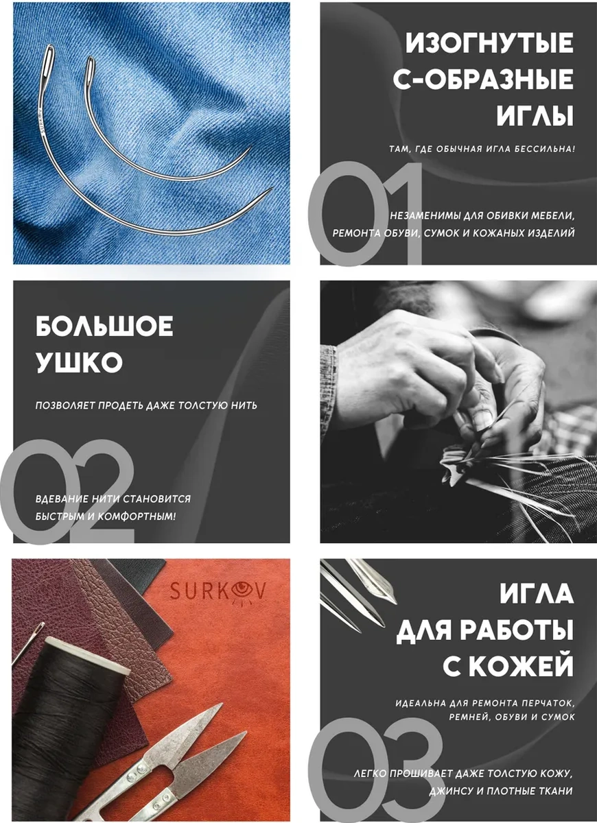 Surkov Dikiş Ve Onarım İçin İğne Seti. 7 İğnelik Gri Set 307422142