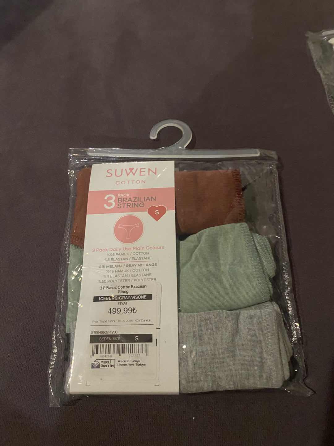Suwen 3lü Koton Brazilian String Külot St00406021280 Gri - Vizon
