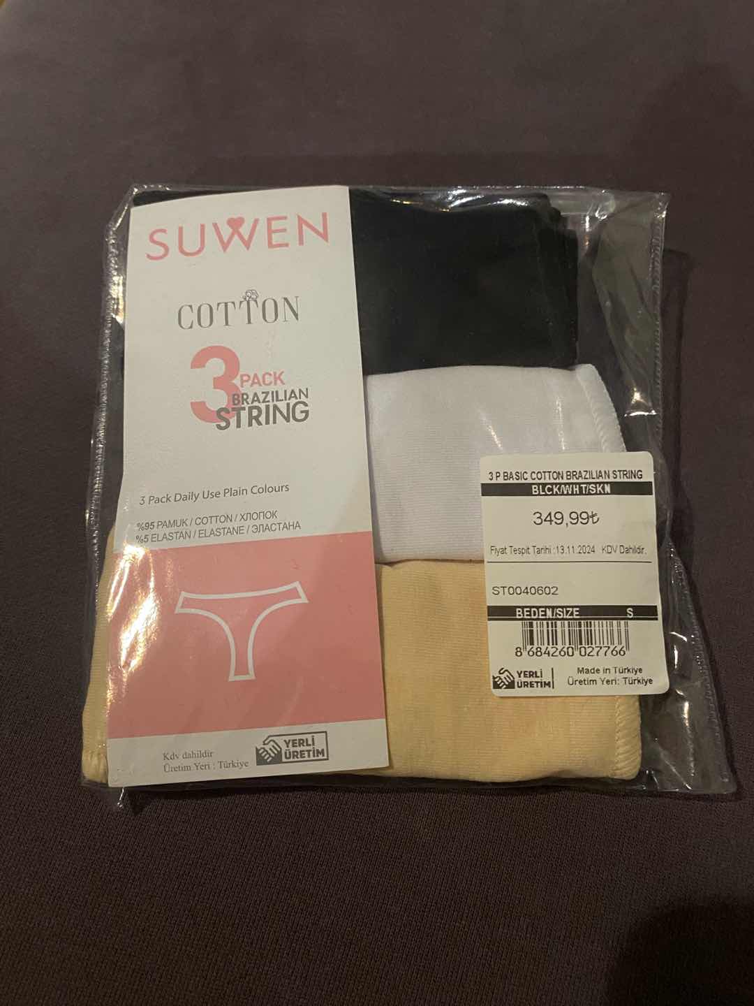 Suwen 3lü Koton Brazilian String Külot St0040602311 Siyah - Beyaz - Ten