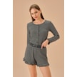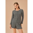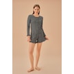 Faal 8614 Kadın Uzun Kollu Dantel Detaylı V Yaka Pijama Takımı-gri Gri