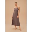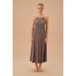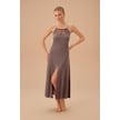 Merry See Degaje Yaka Yırtmaçlı Saten Gecelik Bej