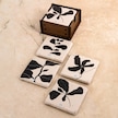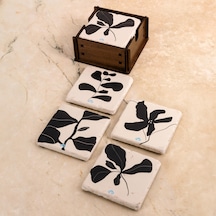 Süzülen Çiçekler Doğaltaş Traverten Ahşap Kutulu 4'lü Bardak Altlığı