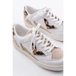 Sv-01 Beyaz Leopar Desenli Bağcıklı Kadın Spor Ayakkabı Beyaz