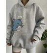 Sweatshirt Tom Ve Jerry Baskılı Kapşonlu Gri2