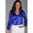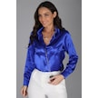 Sweetness Kadın Saks Mavi Saten Uzun Kol Abiye Gömlek Mavi