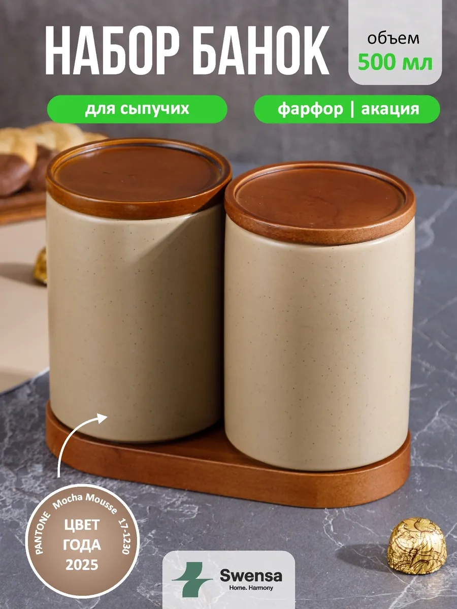 Swensa Porselen Saklama Kavanozları Seti, Standlı 2 Adet 449614927 Bej