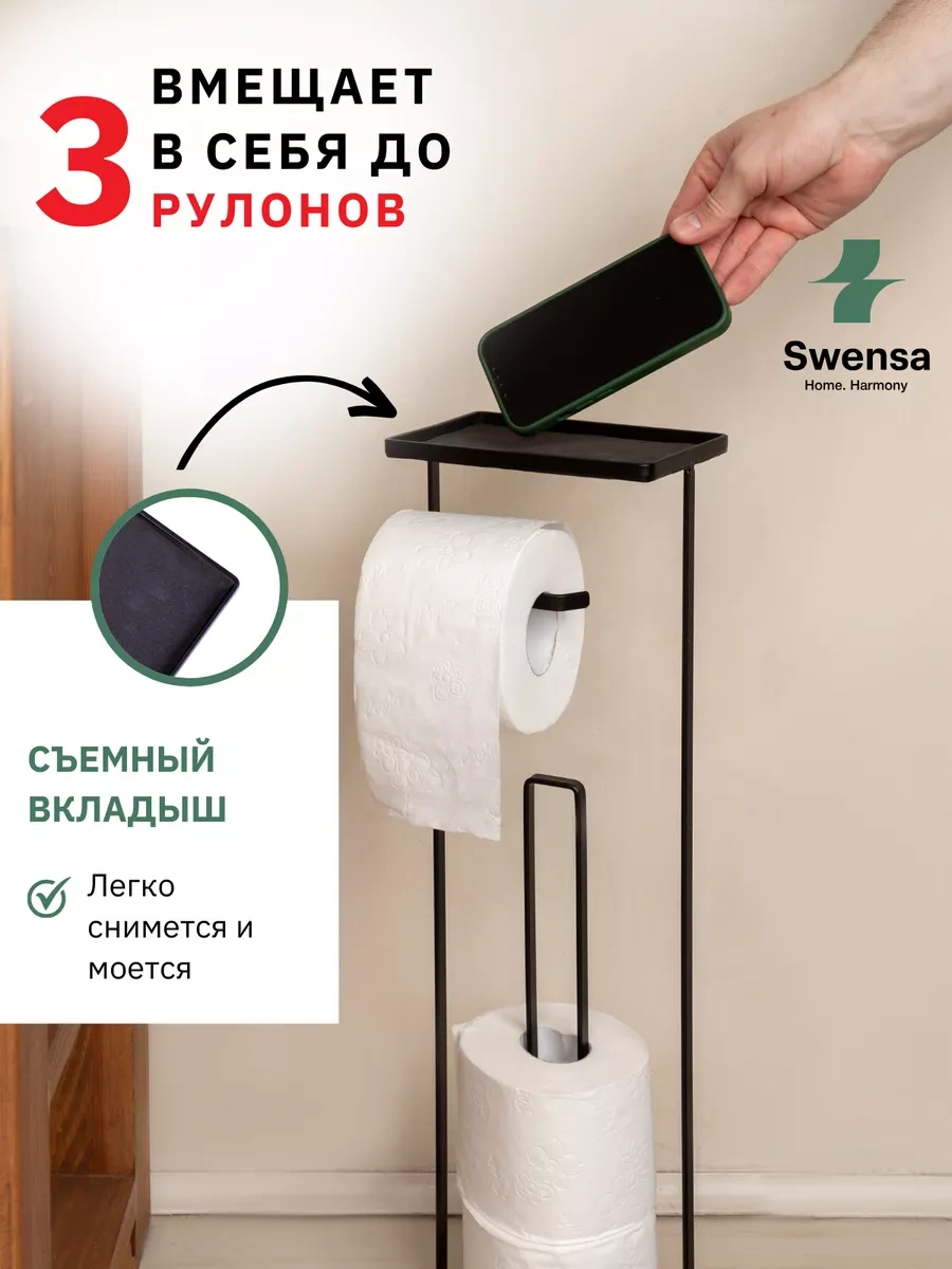Swensa Raflı Ve Depolu Tuvalet Kağıdı Tutucu 217320719 Siyah