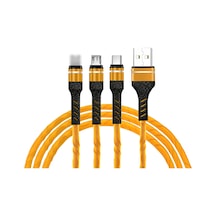 Symbee 1.2 Metre Sarı 3a Hızlı Şarj Kablosu - Lightning, Type-c Ve Micro Usb Uçları İle Çok Fonksiyonlu Usb Kablosu