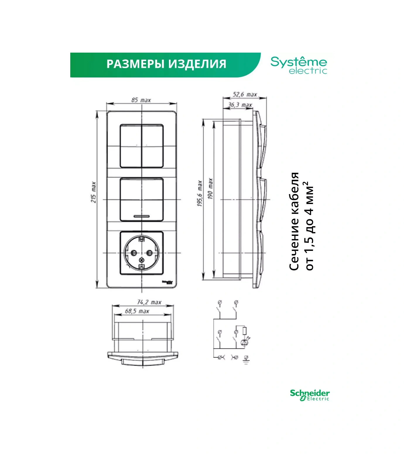 Systeme Electric Dörtlü Anahtarlı Ve Prizli Kombini Blok 34051310 Tekli Topraklı Priz, 4 Kilitli Şalter Schneider Blanca