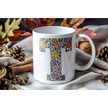 T Baş Harf Çiçek Desenleri İle Natural Tarz Kupa Bardak - Kişiye Özel Çiçekli Kahve Çay Bardak - Beyaz