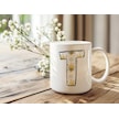 T Harfi Arı Desenli Kupa - Sevimli Hayvan Temalı Kişiye Özel Kahve Kupası - Şans Kupası Beyaz