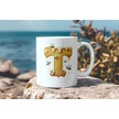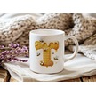 T Harfi Bal Arısı Tasarım Kupa Bardak - Bal Ve Petek Desenli Kişiye Özel Kahve Kupası - Hediyelik Beyaz