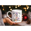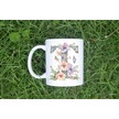T Harfi Çiçekli Kupa Bardak - Soft Renk Çiçek Ve Kelebek Desenli Zarif Kahve Kupası - Bohem Beyaz