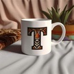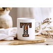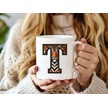 T Harfi Kaplan Figürlü Nakış Desenli Kupa Bardak - Kişiye Özel Vahşi Hayvan Desenli Kupa - Hediye Beyaz