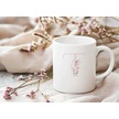 T Harfi Pembe Çiçek Desenli Kupa Bardak - Zarif Pembe Çiçek Tasarım Kahve Çay Kupası - Hediye Beyaz