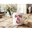 T Harfi Pembe Kareli Kalpli Göz Emojili Kupa Bardak Eğlenceli Kareli Tasarım Kahve Çay Kupası 07 Beyaz