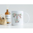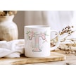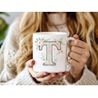 T Harfli Çiçek Desenli Kupa Bardak - Ekose Desenli Yeşil Pembe Desenli Tasarım - Kişiye Özel Hediye Beyaz